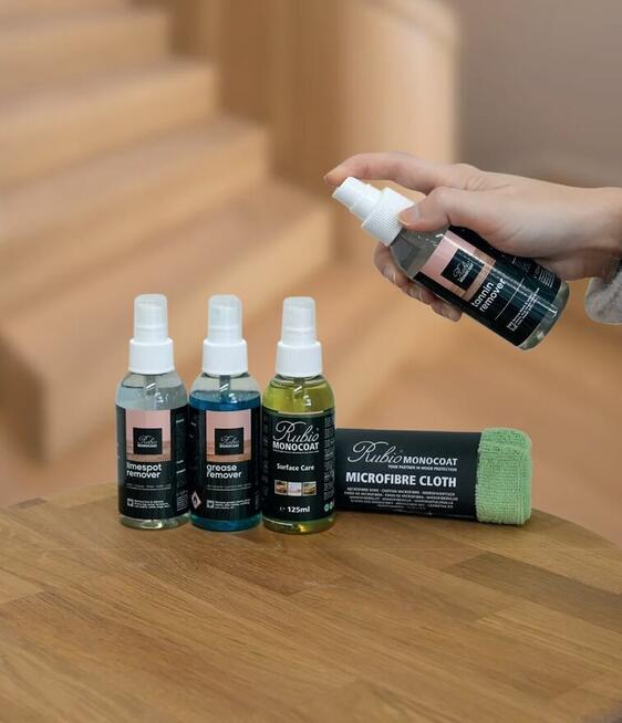 Spray do usuwania plam LIMESPOT REMOVER Rubio Monocoat usuwa plamy z wody wapiennej , plamy alkaiczne, białe pierścienie, ...