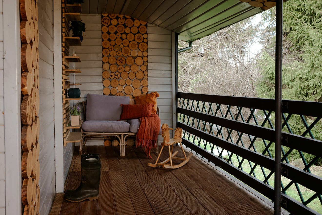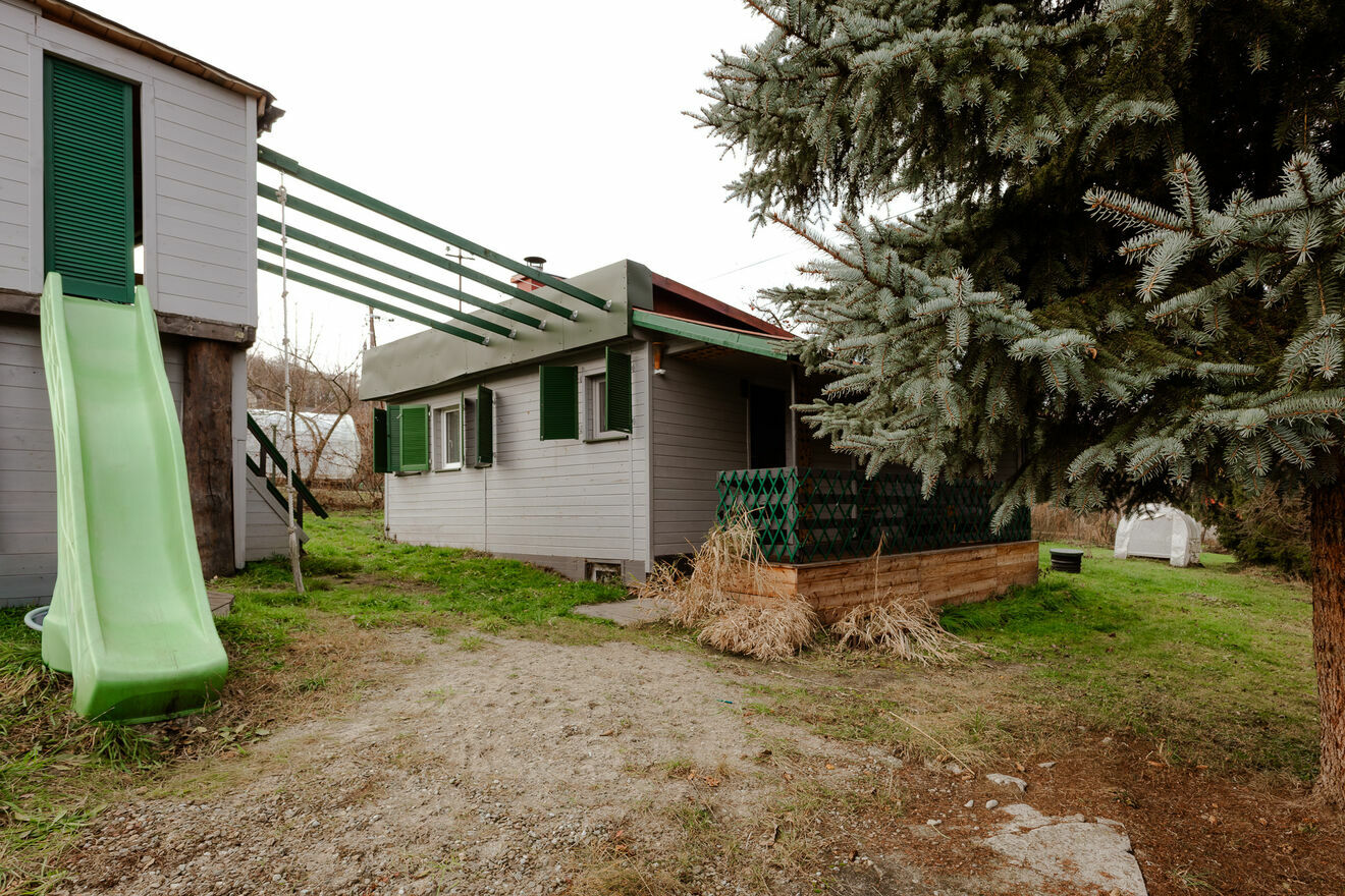 Na działce znajduje się zadbany, drewniany domek o powierzchni 36 m², gotowy do natychmiastowego użytkowania: