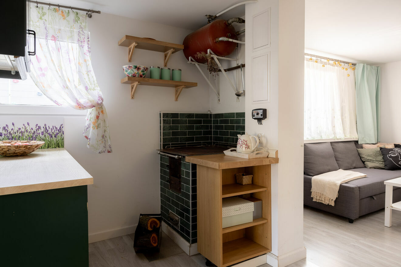 Ogrzewanie: Efektywny system oparty na piecyku kuchennym z centralnym rozprowadzeniem ciepła (kaloryfery w każdym pomieszczeniu). Dodatkowo dostępny jest kominek, który tworzy wyjątkowy klimat.